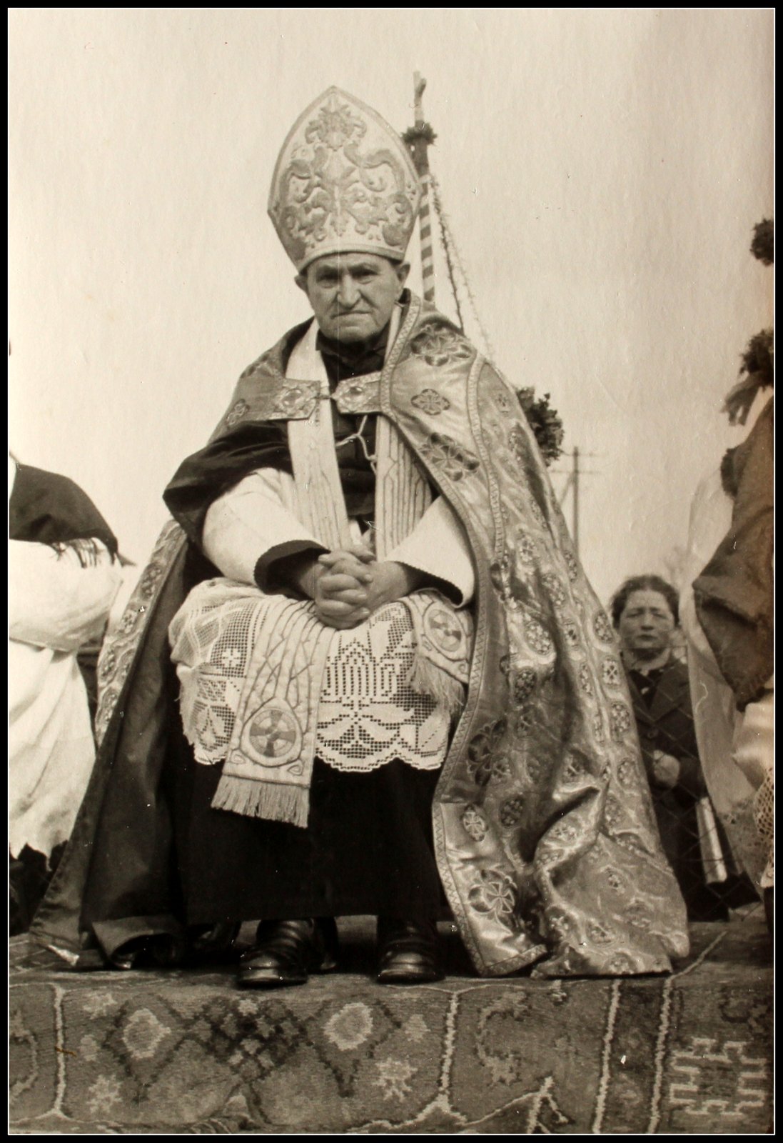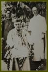 Die Ehrengäste bei der Prozession sitzen in einer Kutsche. Rechts Pater Urban und Pfarrer