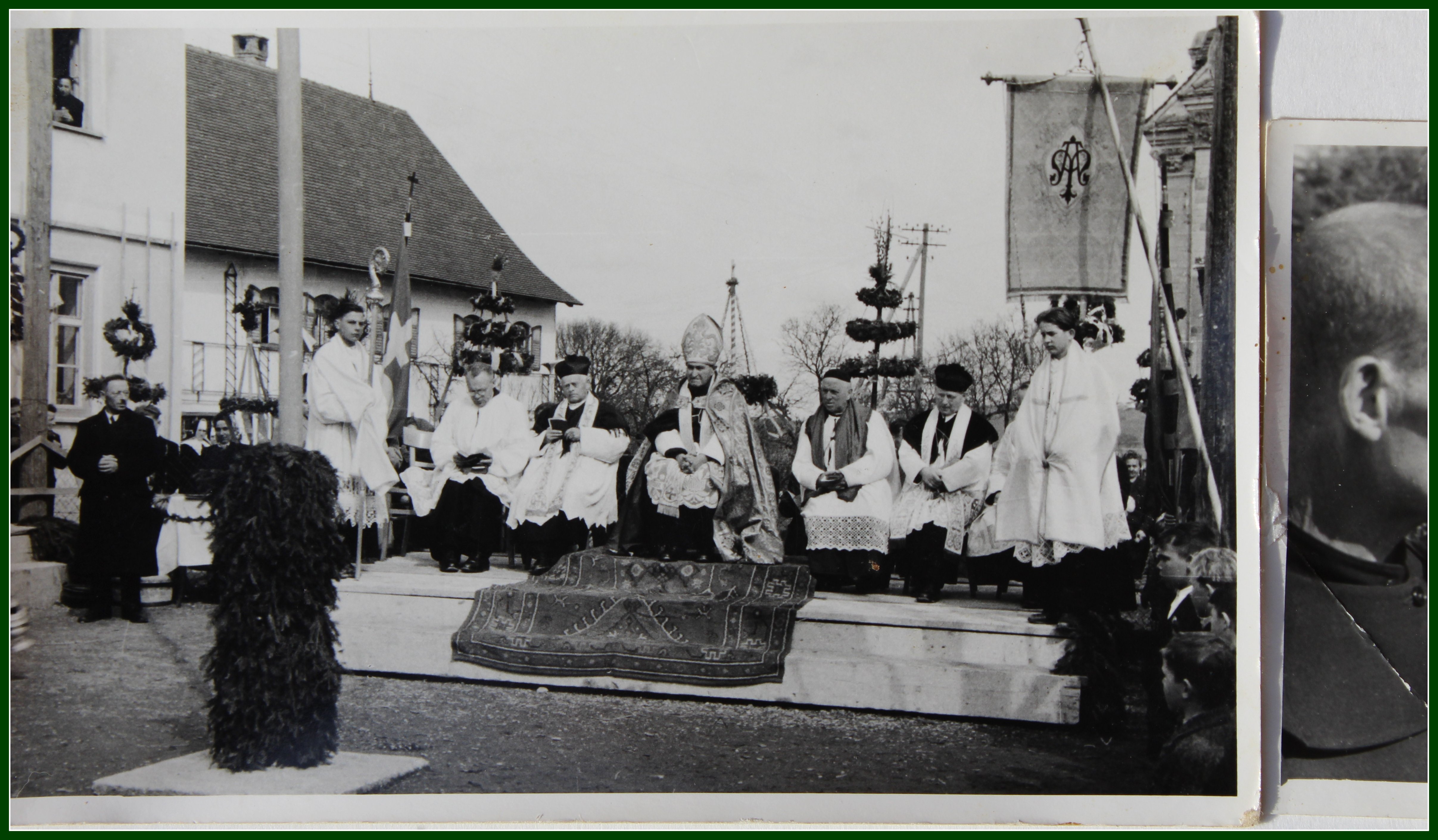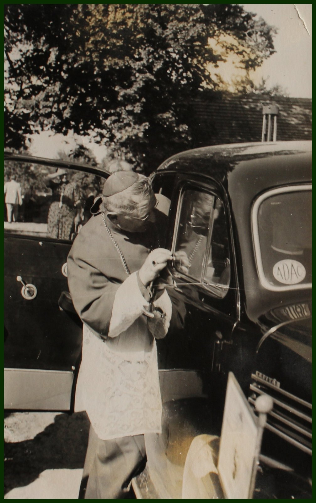 Walkenberg war einst berühmt für seine tausendjährige Linde. Einweihung der Bruder Klauskapelle. Pfarrer Kracker vor der Bruder Klauskapelle in Walkenberg. Bischof Freundorfer steigt ein in das Auto mit der Standarte.