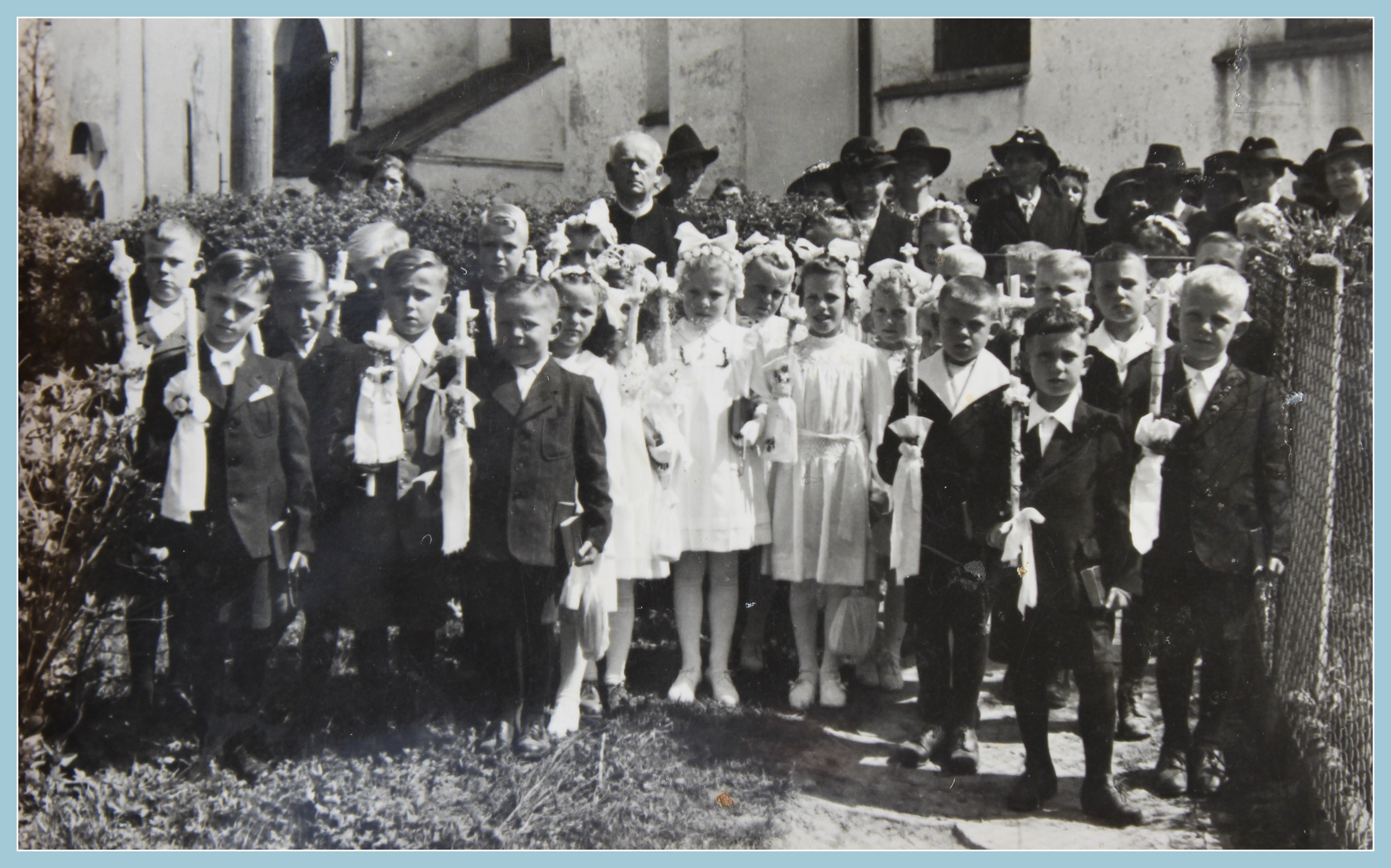 Pfarrer Kracker mit Erstkommunikanten