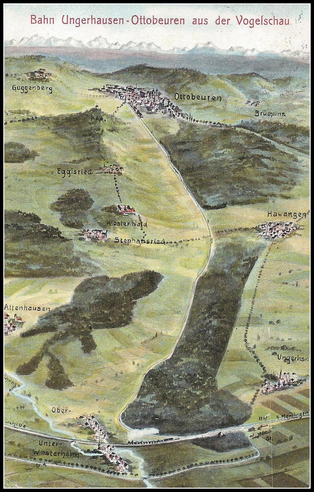 - Bahn Ungerhausen - Ottobeuren , aus der Vogelschau 1908