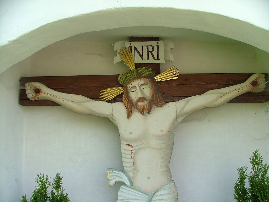 Nachdem alle überzeugt waren, dass die Christusstatue ein für alle mal verloren war, hatte A. Natterer eine Kopie der Figur hergestellt. Auf ein Brett in der Größe und mit dem Umriss des Orginals malte er den Corpus. Die Kopie nahm nun den Platz des Orginals ein. Nach der Rückkehr des Orginals brauchte man für die Kopie einen neuen Platz und fand ihn an der Nordseite der Krugzeller Pfarrkirche.