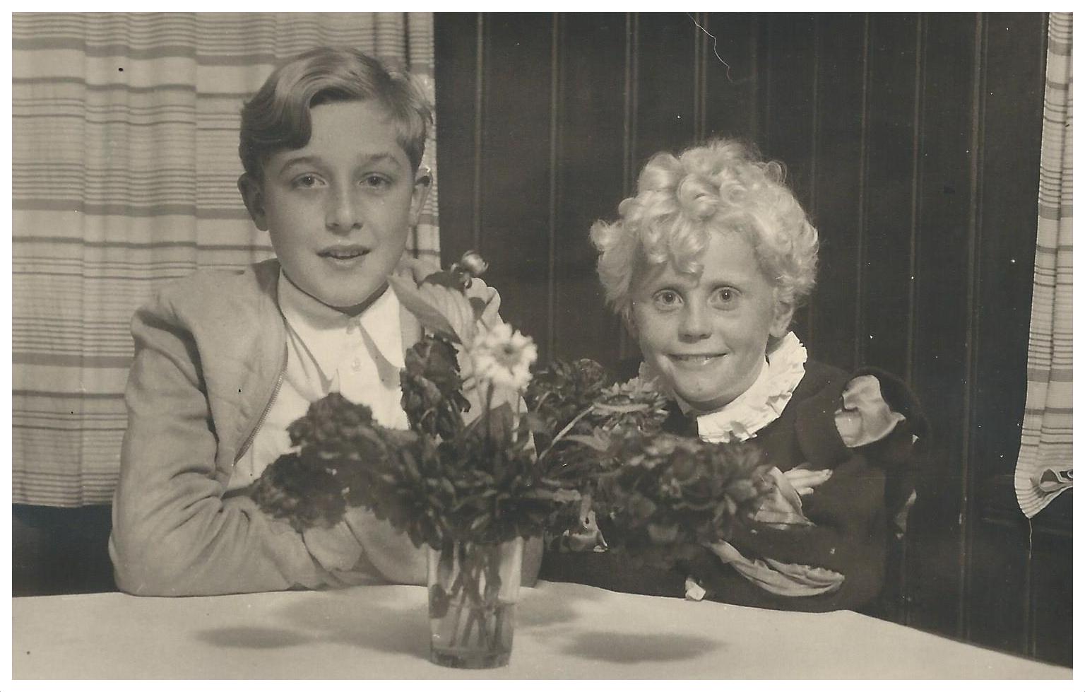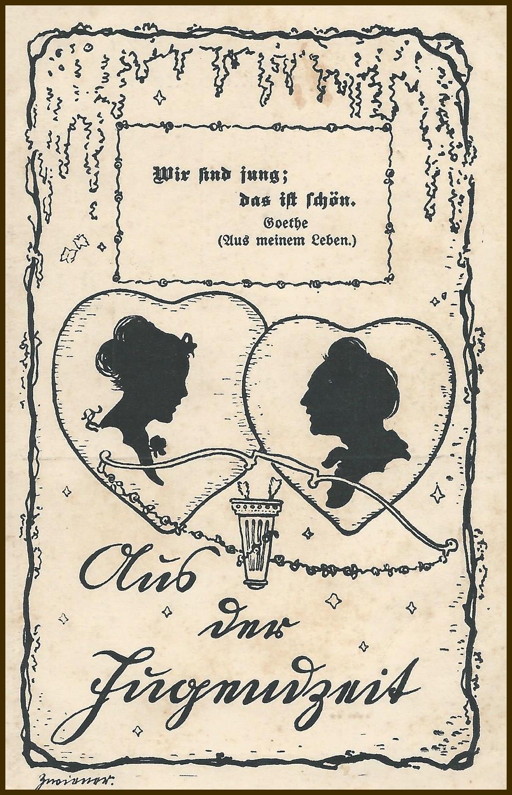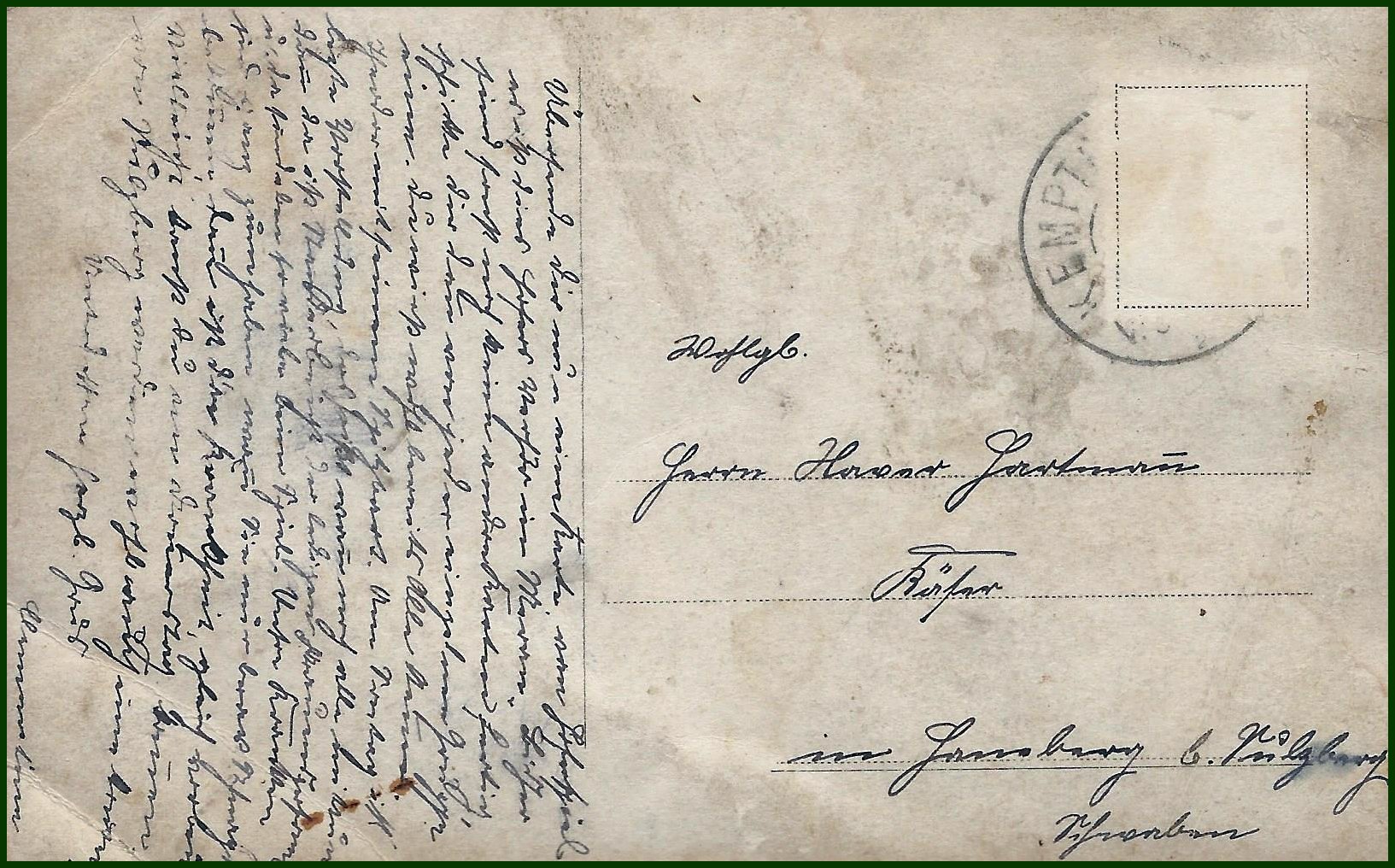 Schwarz-Weiß Bild, schon leicht vergilbt, auf der Rückseite Text und Adresse