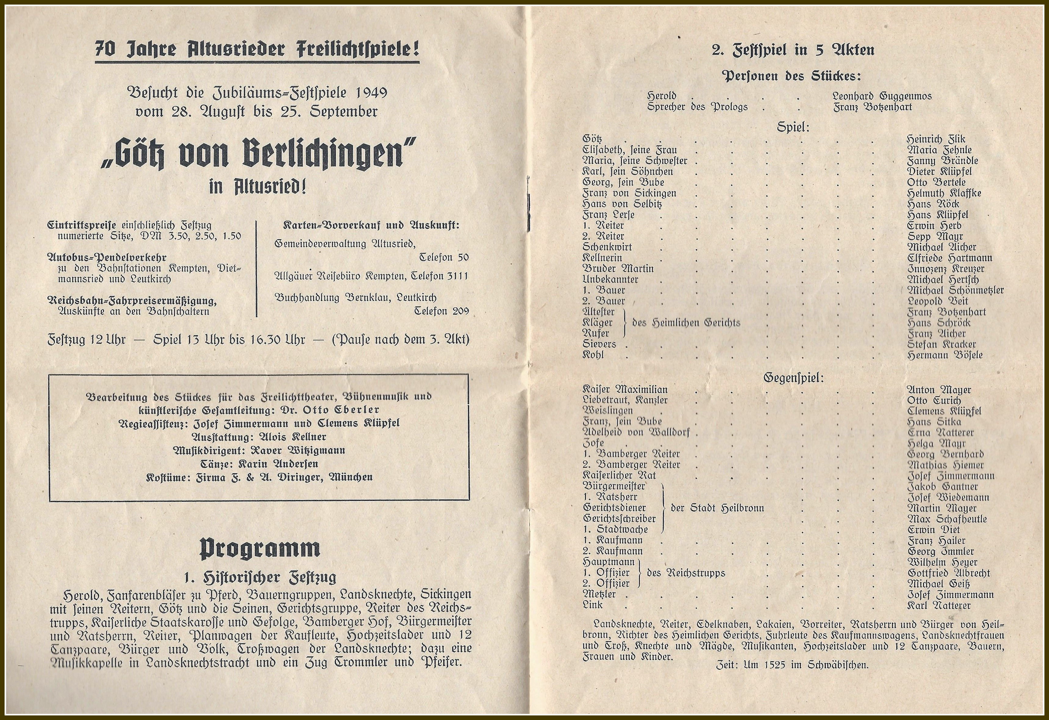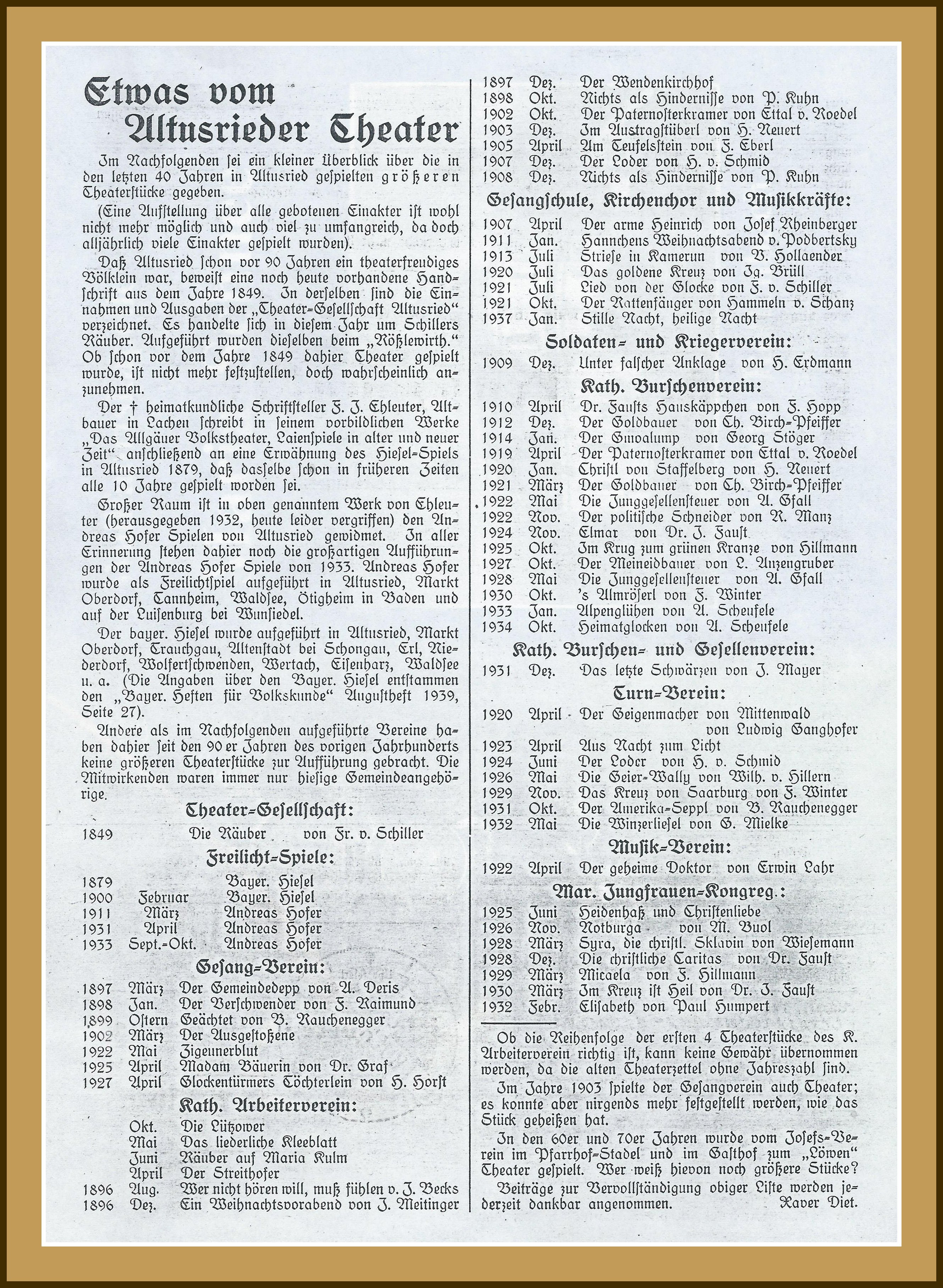 Dass Altusried schon vor 167 Jahren ein theaterfreudiges Volk war, beweist eine noch heut vorhandene Abschrift aus dem Jahre 1849.