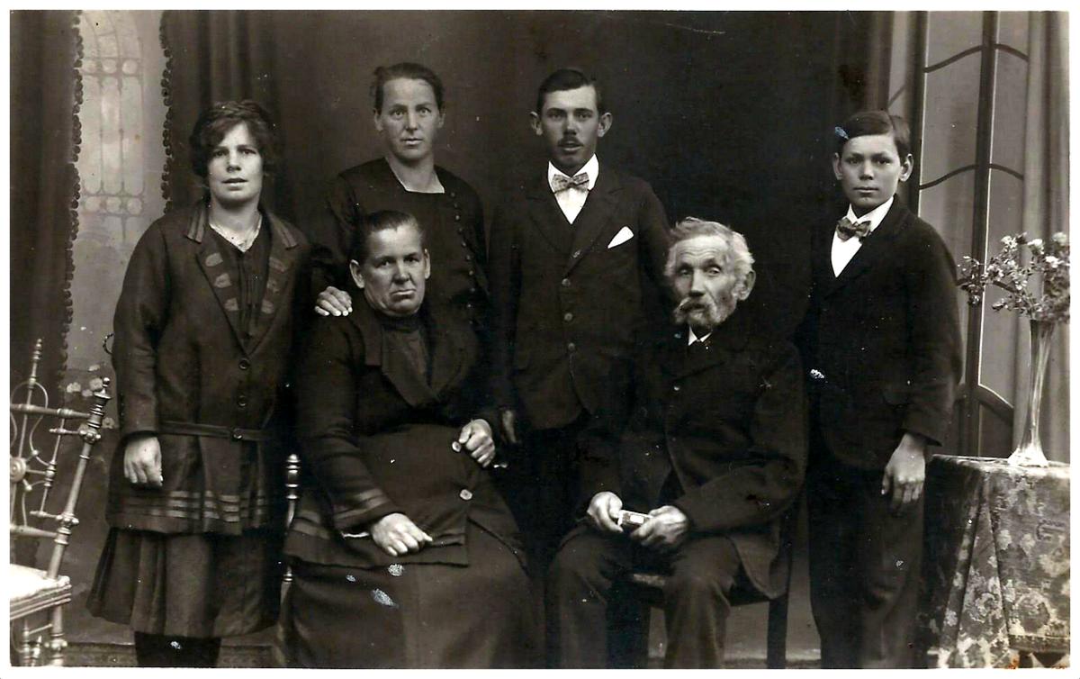 Frau Maria Gassner, geborene Lingg,war die älteste Teilnehmerin. Auf dem alten Schwarzweiß Foto steht sie auf der linken Seite neben ihren Eltern und Geschwistern. Archiv