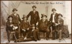- In der Mitte sitzend mit einer Feder auf dem Hut: Fähnle Georg Goldschmied, geboren 1850