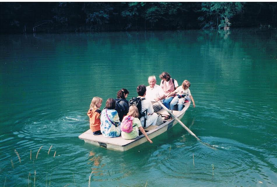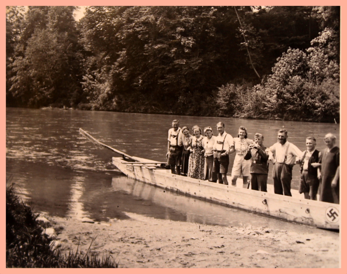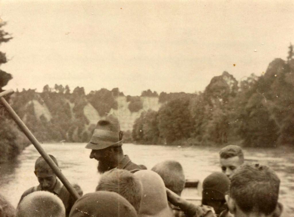 5. Innozenz K. fährt eine Jugendgruppe über die Iller, im Hintergrund die Steilwände