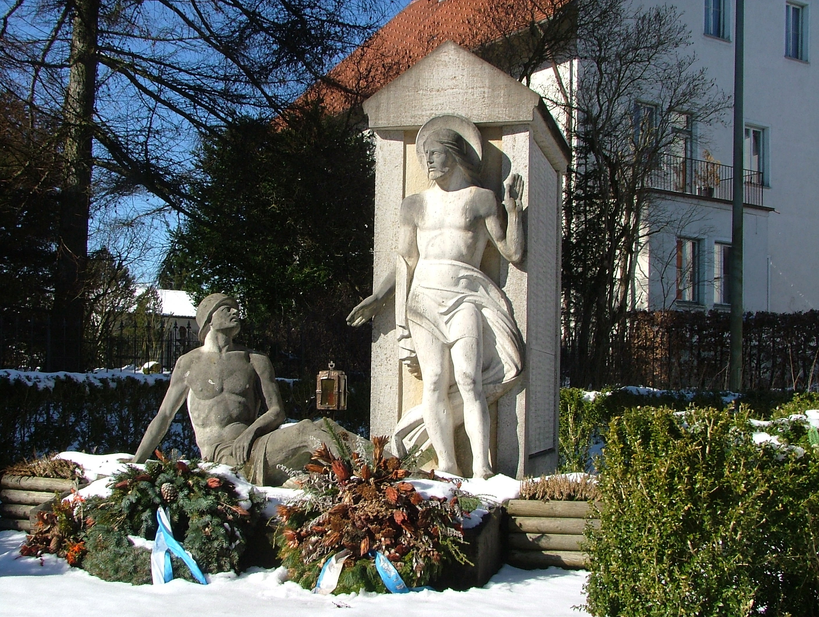 In den Zwanzigerjahren des vorigen Jahrhunderts bestand ein großer Bedarf an Kriegerdenkmäler, die an die vielen Toten des 1.Weltkrieges erinnern sollten. In Altusried erhielt der gebürtige Altusrieder Joseph Mayer den Auftrag ein Mahnmal zu erstellen. Das Denkmal besteht aus einer Christusfigur, die vor einer Art Grabkammer steht, welche aus Schrifttafeln mit den Namen der 303 Gefallenen und Vermissten gebildet wird. Des Weiteren liegt ein gefallener Soldat auf einem steinernen Sarg vor Christus und blickt hoffnungsvoll zu ihm auf.