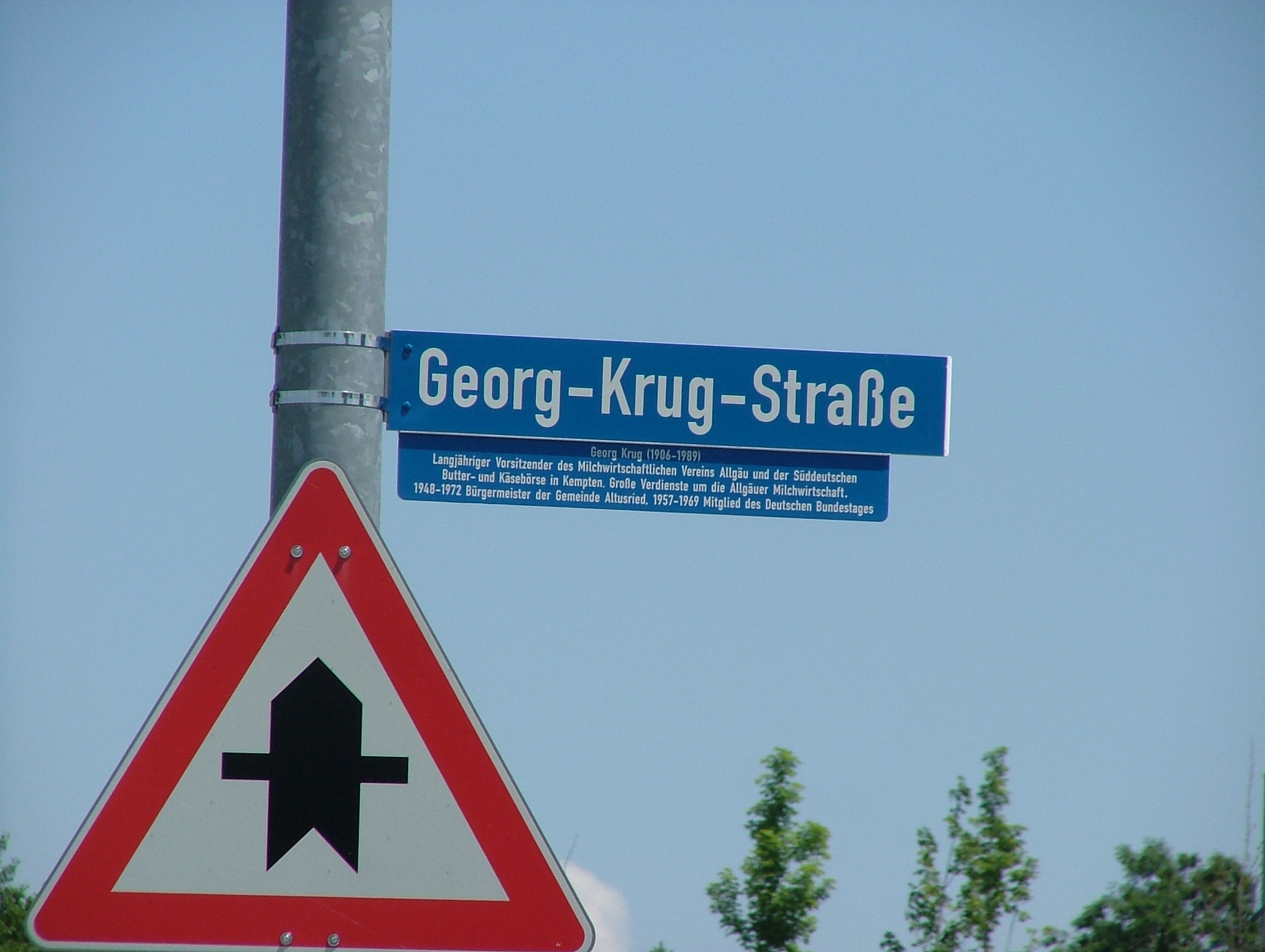1. Georg Krug war langjähriger Vorsitzender des Milchwirtschaftlichen Vereins Allgäu und der Süddeutschen Butter- und Käsebörse in Kempten. Große Verdienste erwarb er sich um die Allgäuer Milchwirtschaft. Von 1948 bis1972 war er Bürgermeister der Gemeinde Altusried und von 1957 bis 1969 Mitglied des Deutschen Bundestages.