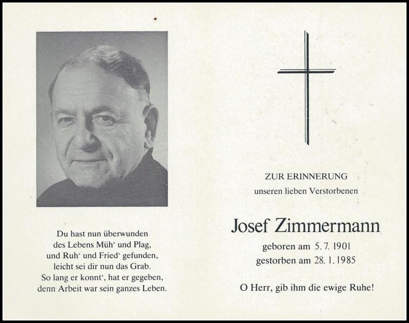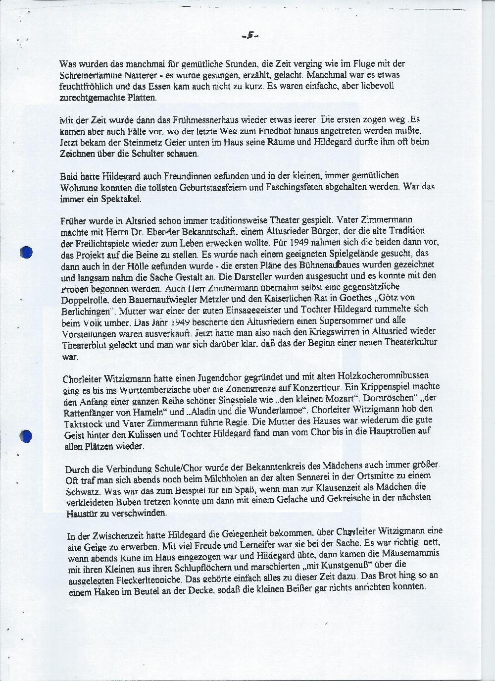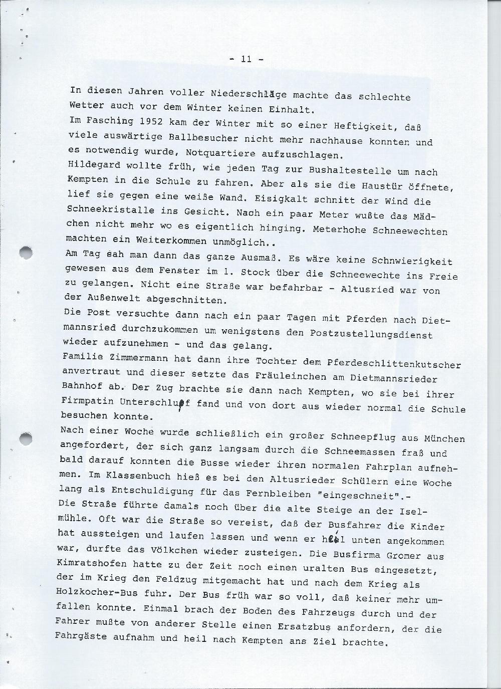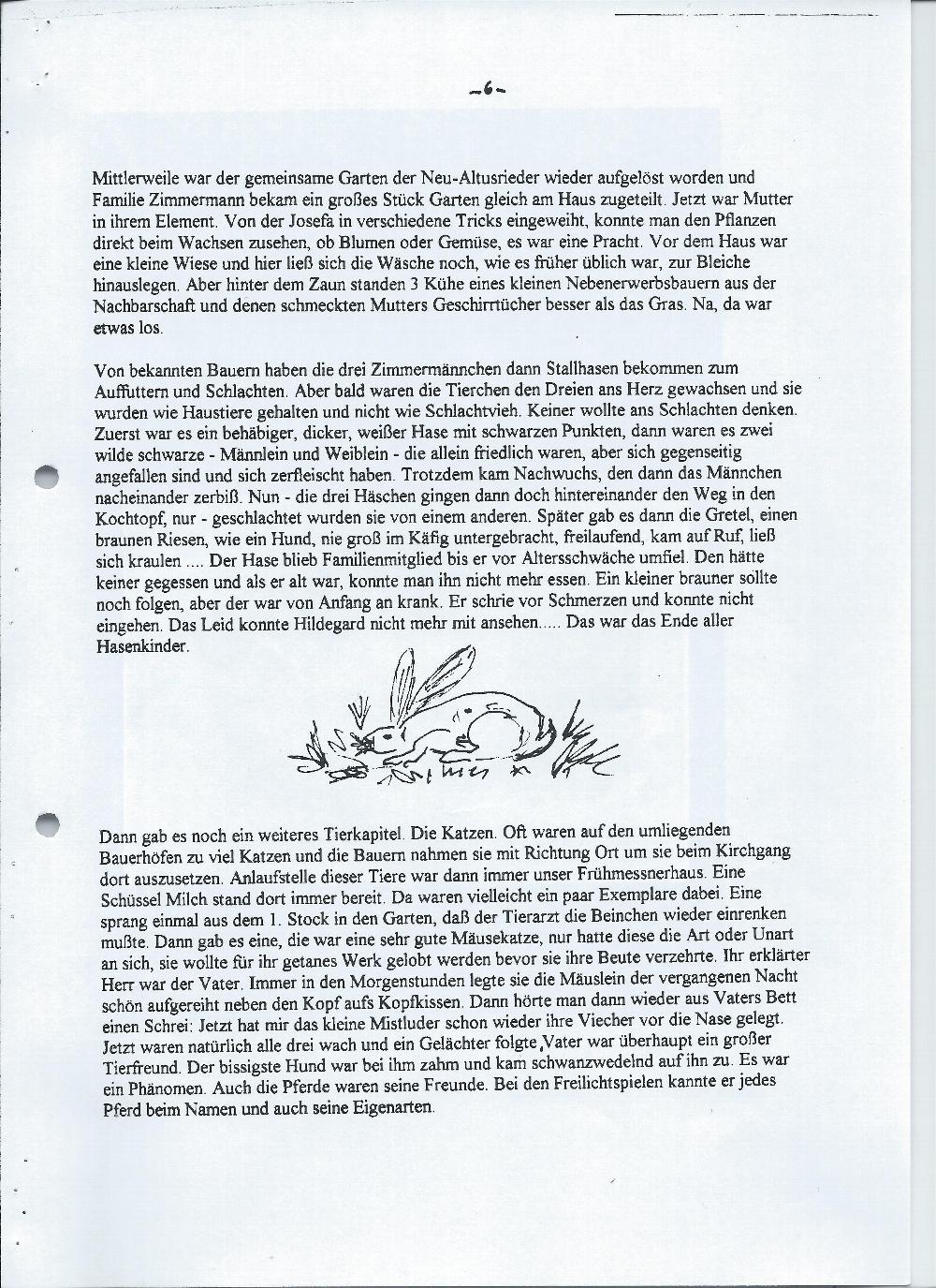 1945 und 1946 wurden drei Millionen Sudetendeutsche aus ihrer Heimat vertrieben. Eine Million davon fanden Zuflucht in Bayern. Mit Recht werden sie heute neben Altbayern, Schwaben und Franken als der vierte Stamm bezeichnet. Ohne die Schaffenskraft der Zuwanderer wäre der wirtschaftliche Aufschwung nach dem Krieg nicht möglich gewesen. Der folgende Bericht handelt über die Ankunft und das Sicheinleben der Familie Zimmermann in Altusried. Joseph Zimmermann spielte in den Fünziger und Sechziger Jahren noch eine wichtige Rolle in Altusried. Er war Theatermann, Regisseur für die Freilichtspiele, Reiseleiter, Bücherwart und zuständig für den Fremdenverkehr.