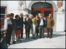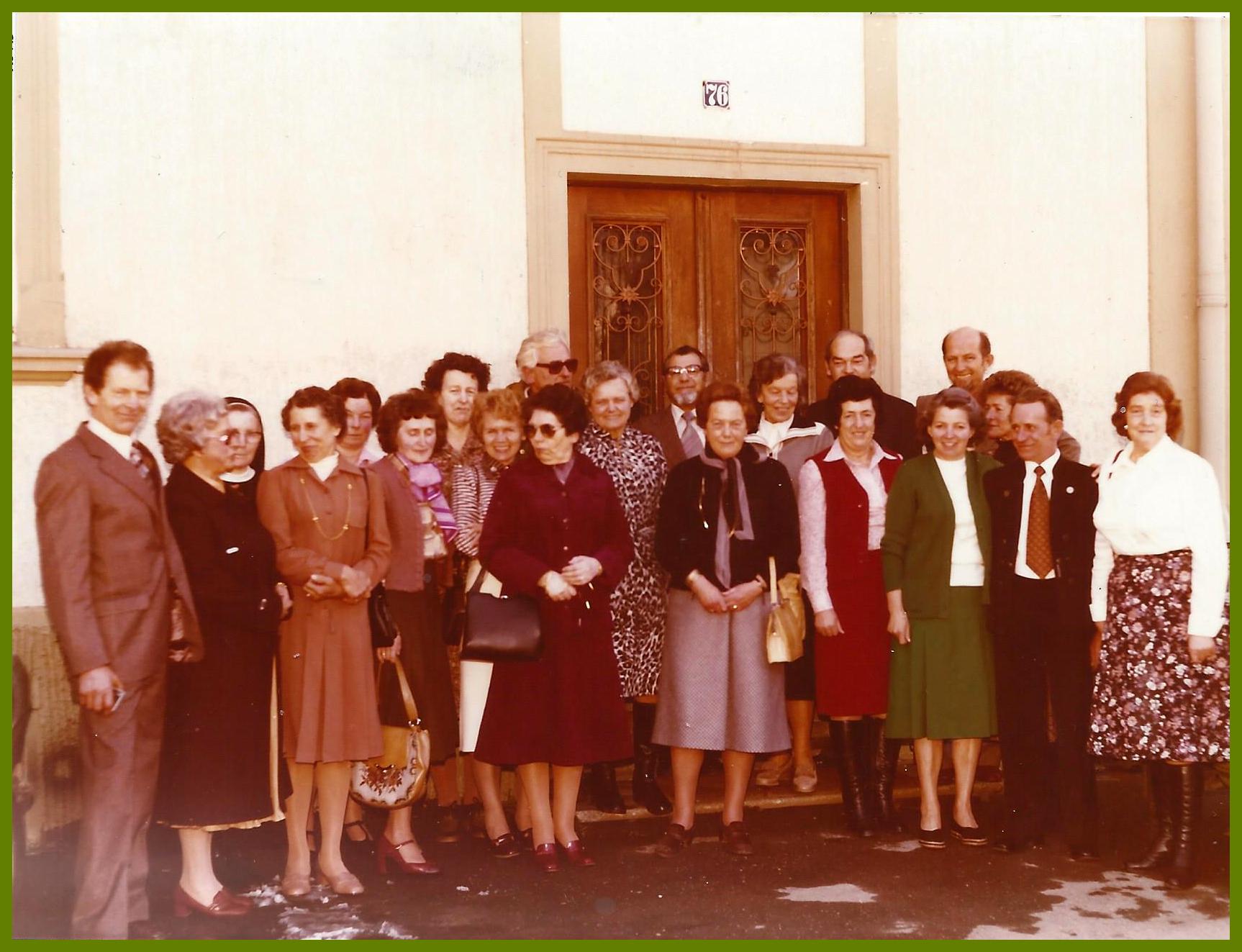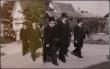 6. Die Jahrgänger von 1929 haben sich vor der Schule versammelt. Darunter auch Pater Albrecht SJ. Er steht innerhalb des Türrahmens.