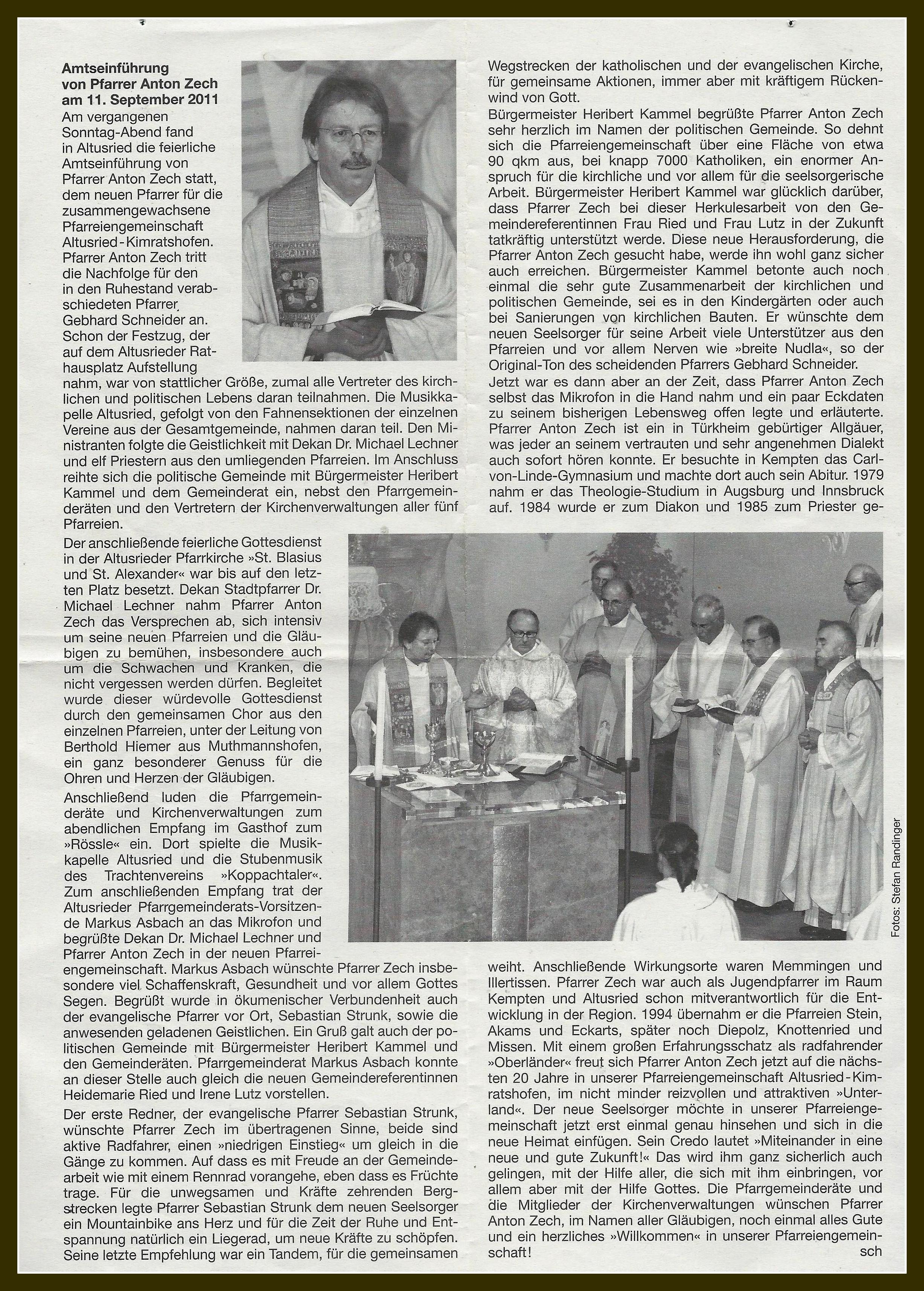 Amtseinführung von Pfarrer Anton Zech am 11. September 2011