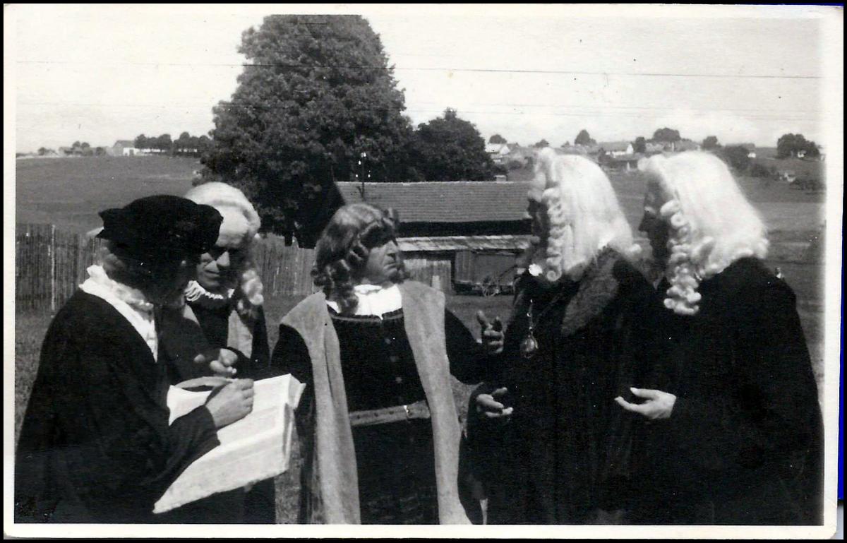 Hauptlehrer Hitzler und Fräulein Anna Blank anno 1935 bei einem Theaterstück. Hitzler ist auch der Verfasser einer Chronik des Marktes Altusried anlässlich des Musikfestes vom 9. August 1925.