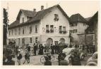 Das letzte Bild zeigt das alte Rathaus, ein Festzug geht vorbei. Der VW Käfer mit dem ovalen Heckfenster zeigt, dass wir die Mitte der Fünfzigerjahre haben. Zwischen Rathaus und Kaufhaus Brändle erkennen wir das Schlössle.